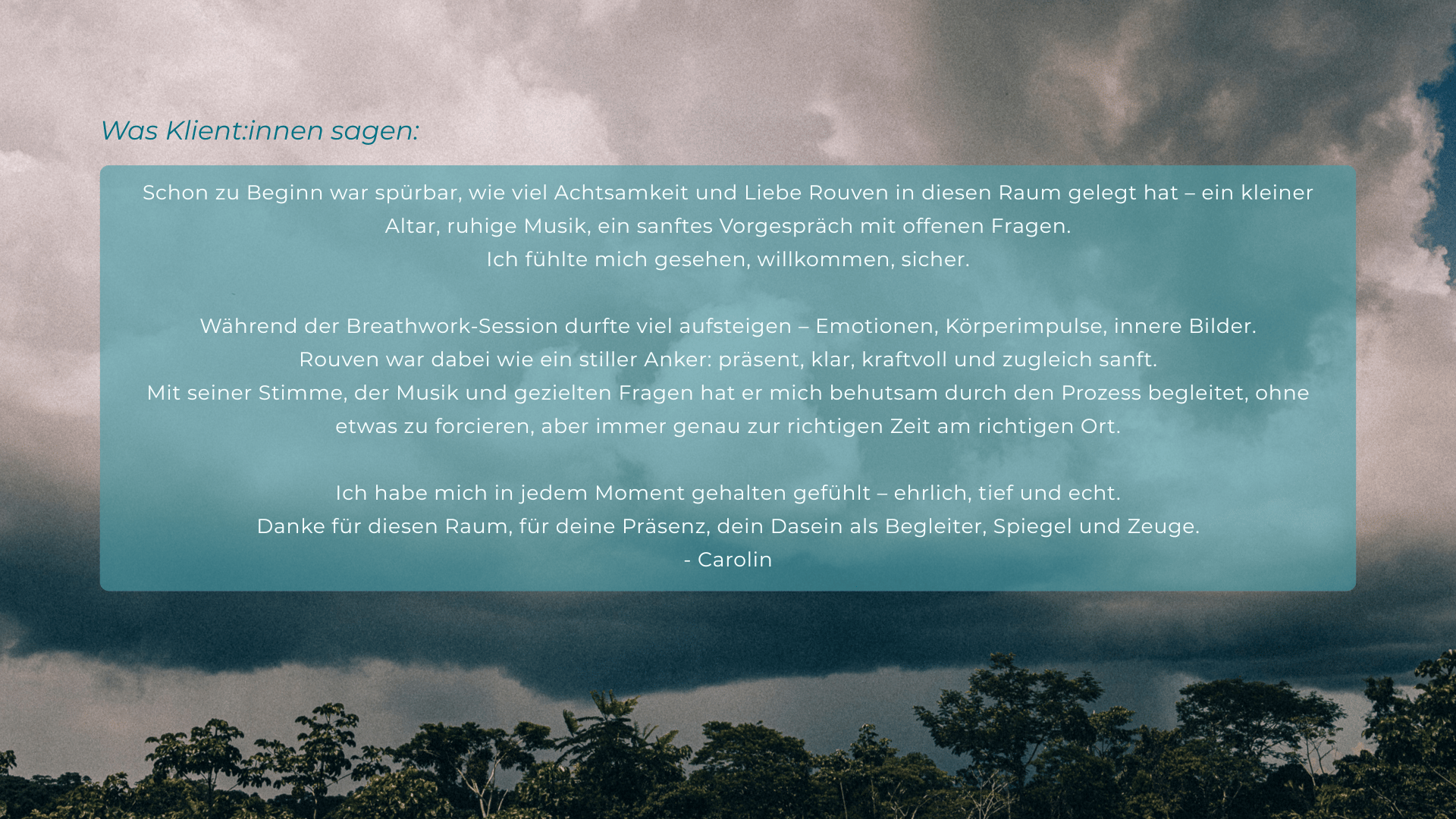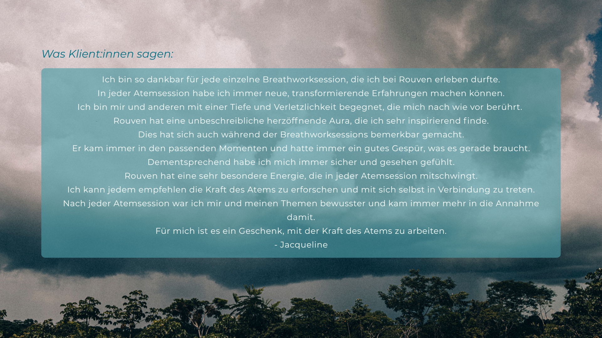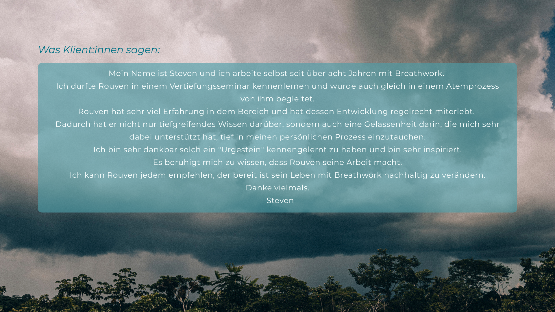 Ein breites Spektrum an Erfahrungen – von langen Meditationsretreats über diverse Therapie- und Selbsterfahrungs-kontexte bis hin zu schamanischer Arbeit im Amazonas – hat mich ebenso geprägt wie meine eigene Reise mit dem Atem.