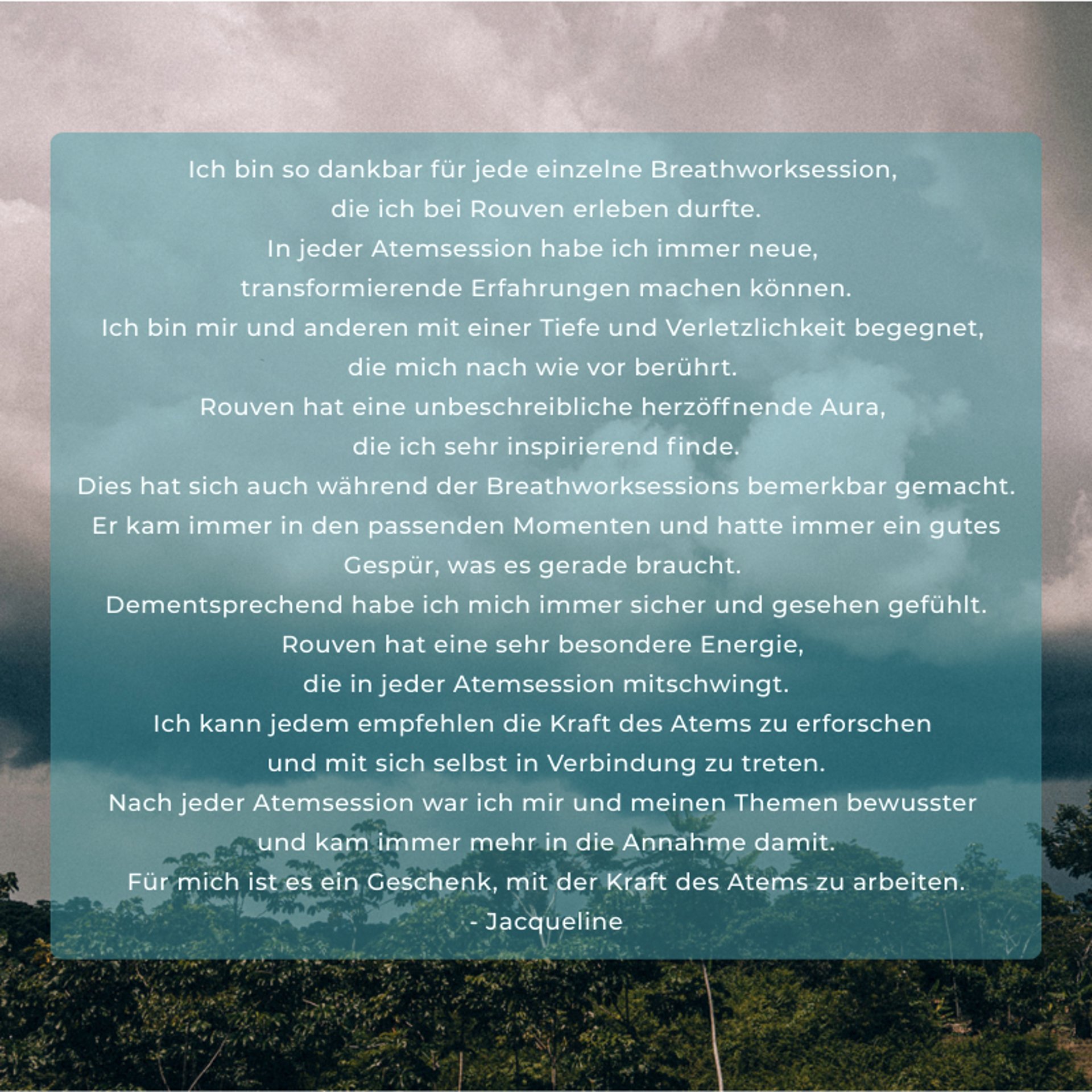 Ein breites Spektrum an Erfahrungen – von langen Meditationsretreats über diverse Therapie- und Selbsterfahrungskontexte bis hin zu schamanischer Arbeit im Amazonas – hat mich ebenso geprägt wie meine eigene Reise mit dem Atem.