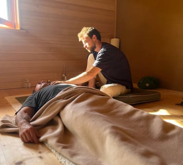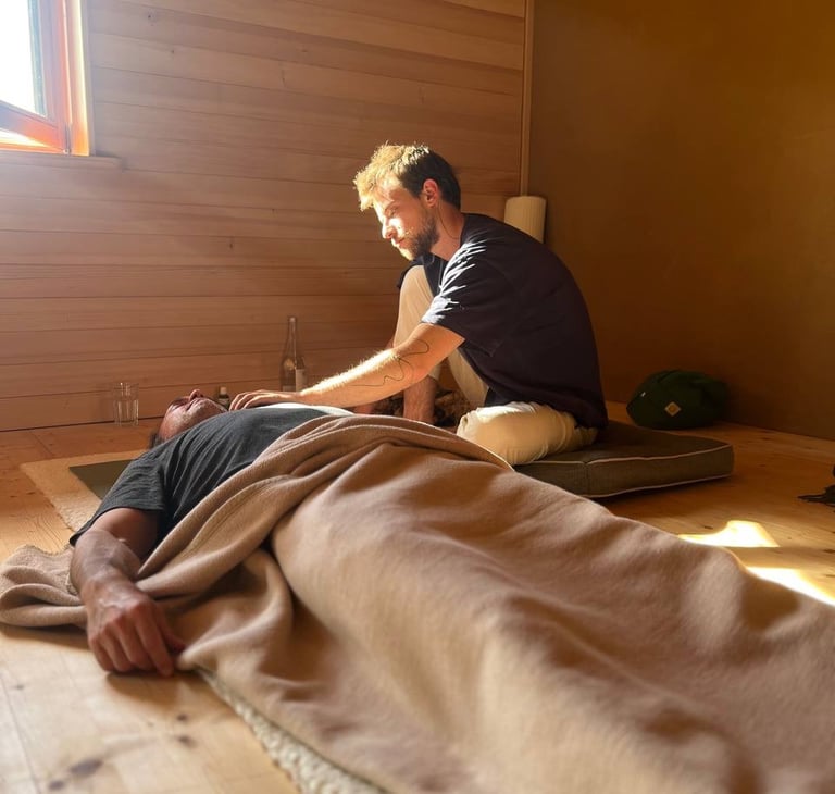 Dann begleite ich dich sanft in die bewusste, verbundene Atmung. Es läuft Musik, und wir gehen mit dem, was Moment für Moment auftaucht.